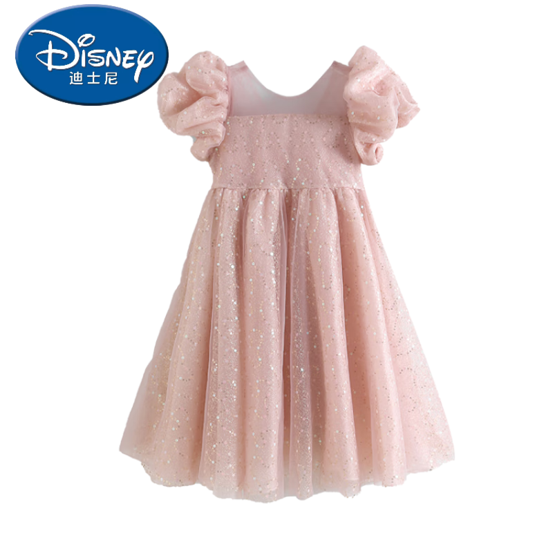 迪士尼(disney)女大童甜美连衣裙夏季2024女生泡泡袖公主裙女孩夏款