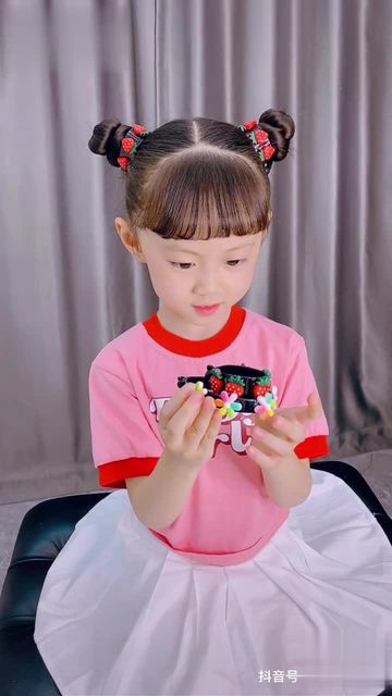 双丸子头配上风铃发带真是绝绝子儿童编发