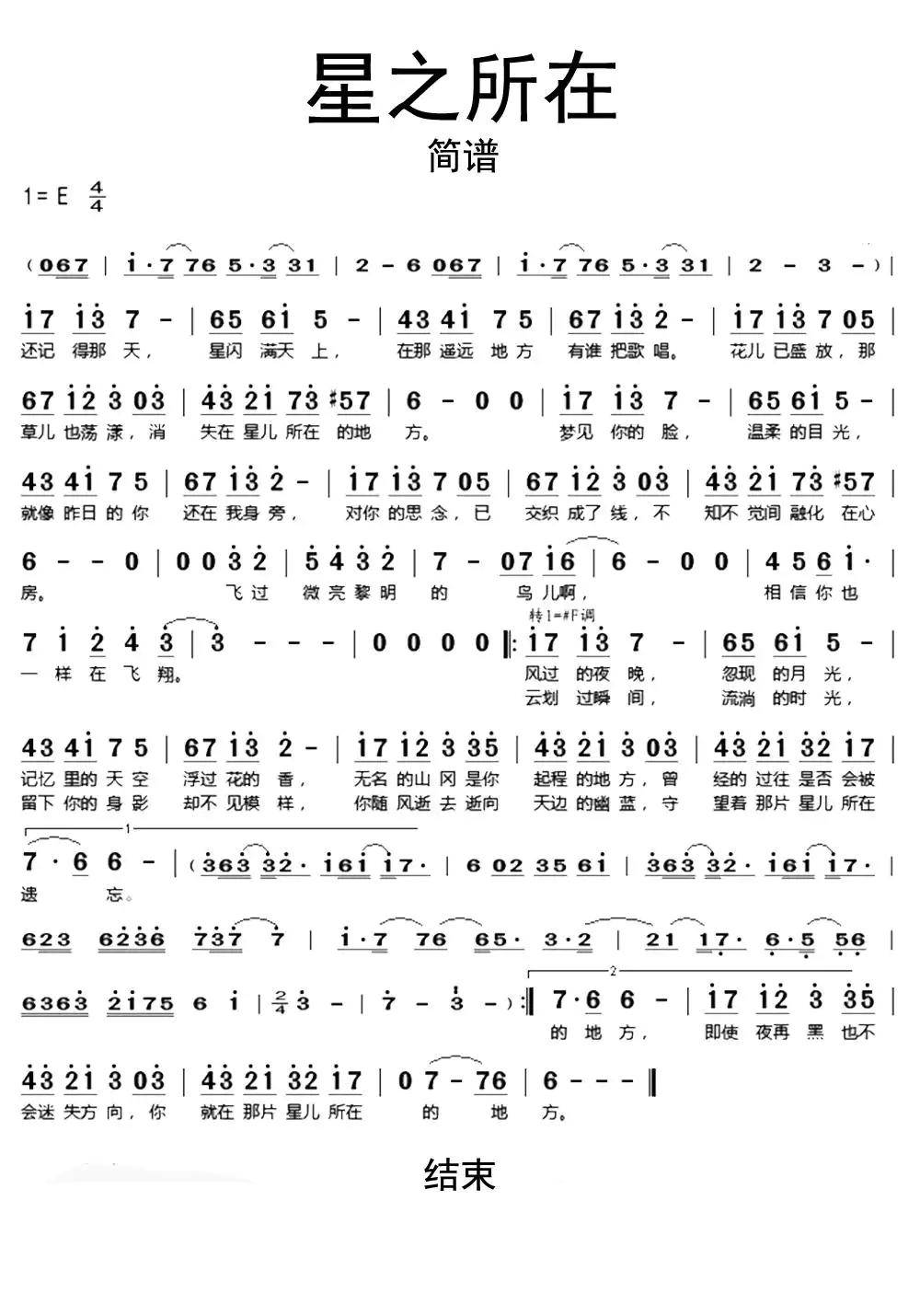 星之所在简谱