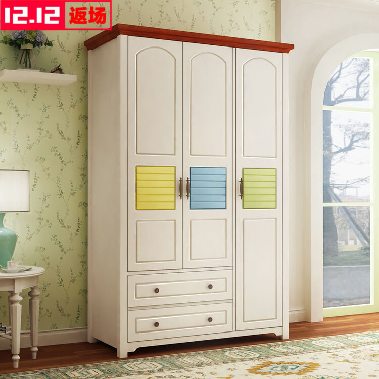 简约三门衣柜实木女孩衣橱公主卧室储物收纳柜经济型开门儿童衣柜