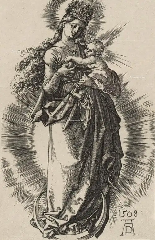 弯月上头戴星冠的圣母 蚀刻版画