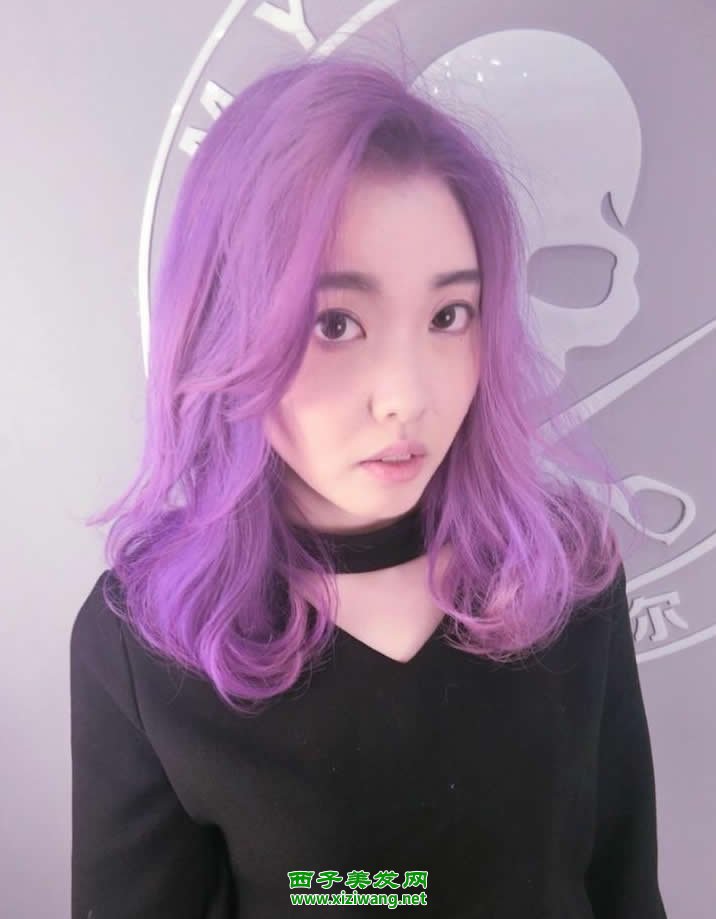 五款女生紫色长发 示范女生紫色中长发发型打理教程