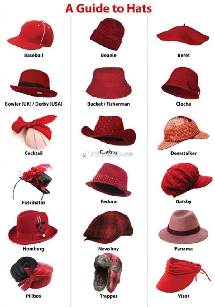 各种类型的帽子英文名图文对照一目了然