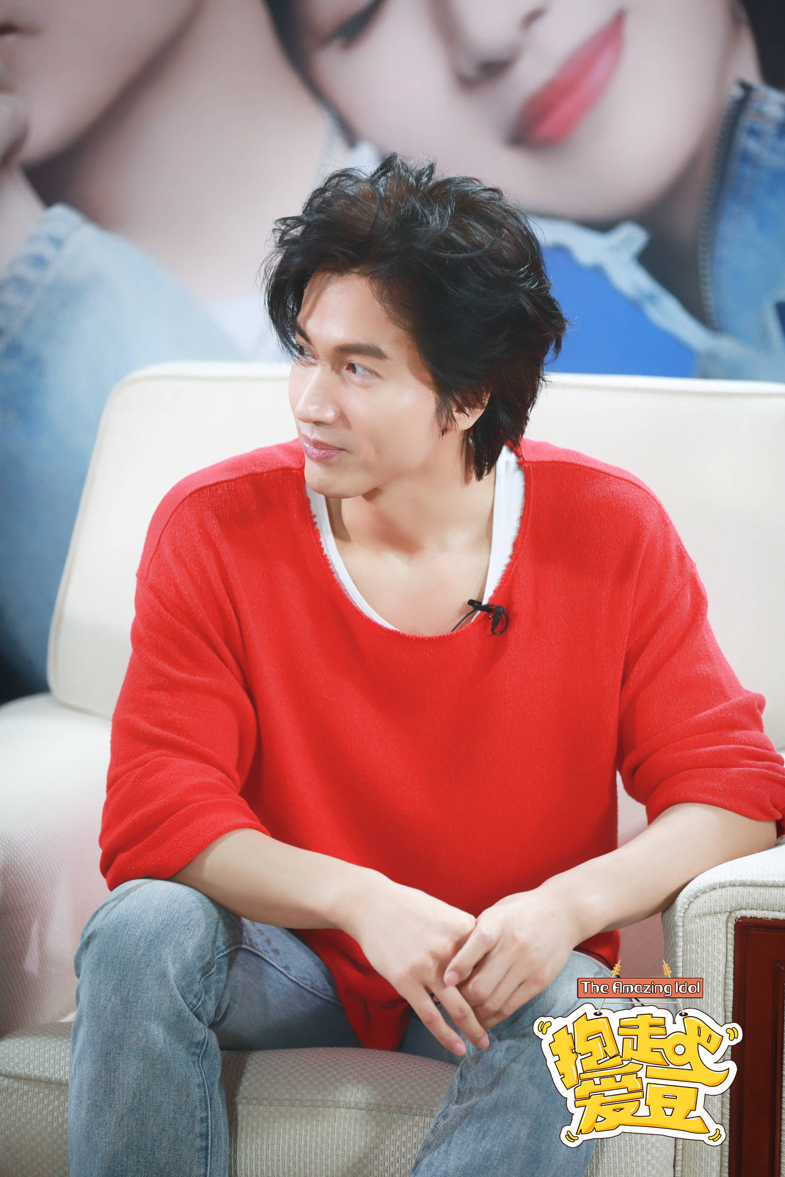 言承旭成都亮相红色毛衣搭配蓝色牛仔裤帅气十足