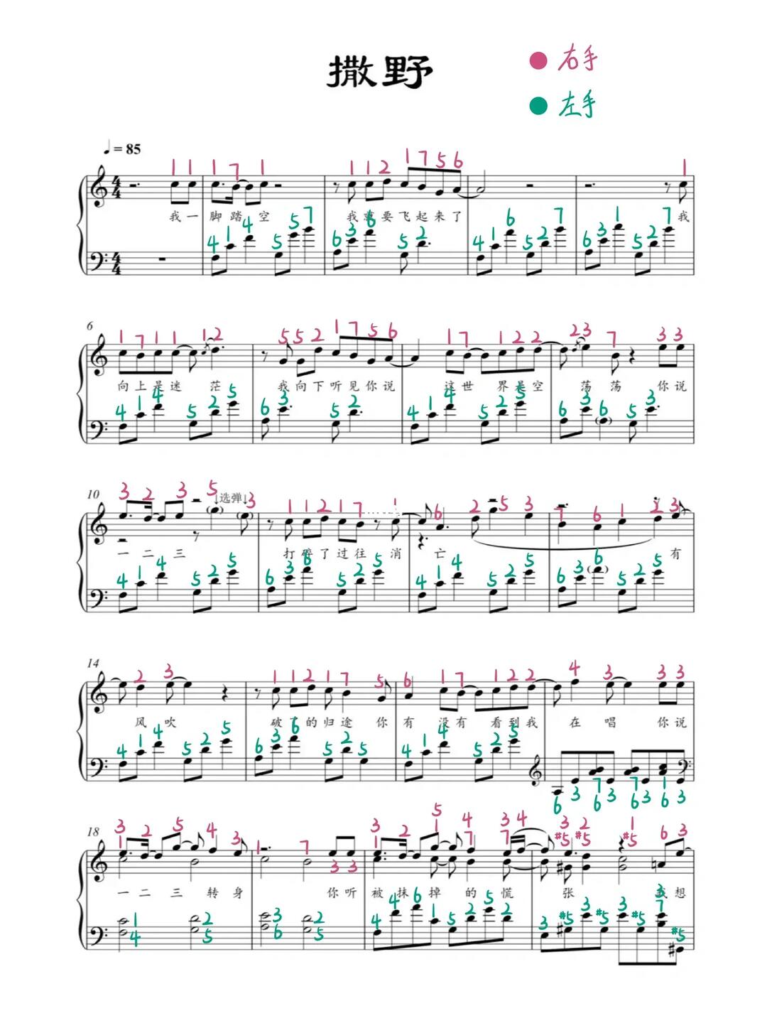 《撒野》钢琴谱完整版