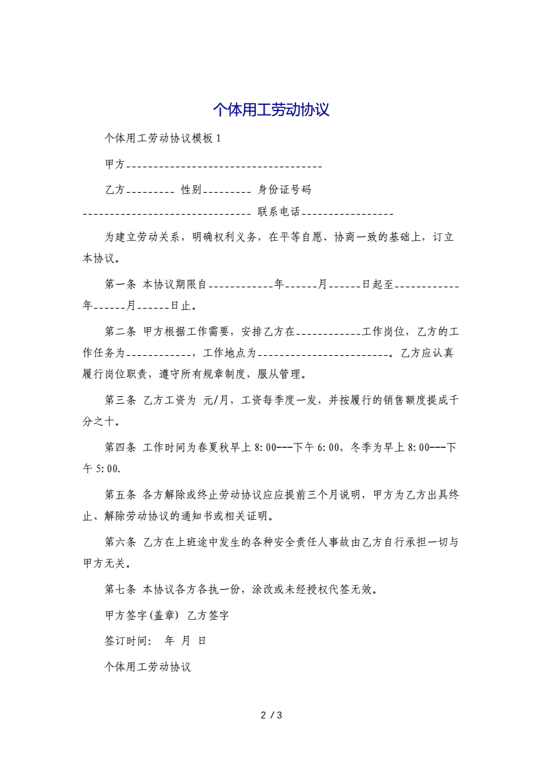 个体用工劳动合同[1]模版.docx 3页