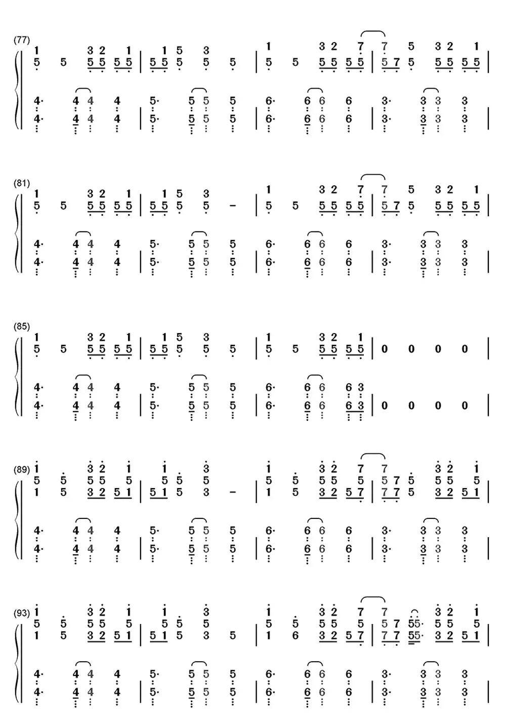 溯钢琴谱简谱数字单手