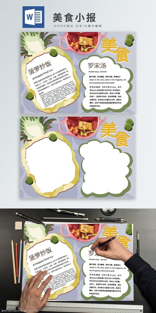 手绘菠萝炒饭罗宋汤美食word手抄报下载-编号26538351-其他-我图网