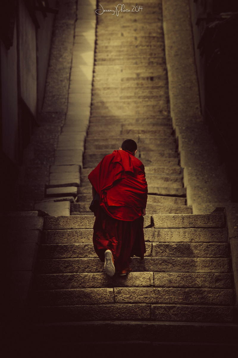 宫,路过一个寺庙(记不得名字了),看到一个僧人静静地站在那里眺望远方
