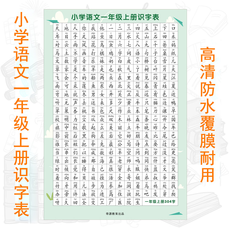 一年级生字表挂图无声墙贴小学生幼儿看图识字汉字清晰护眼大尺寸
