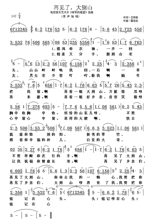 再见了,大别山_简谱_搜谱网