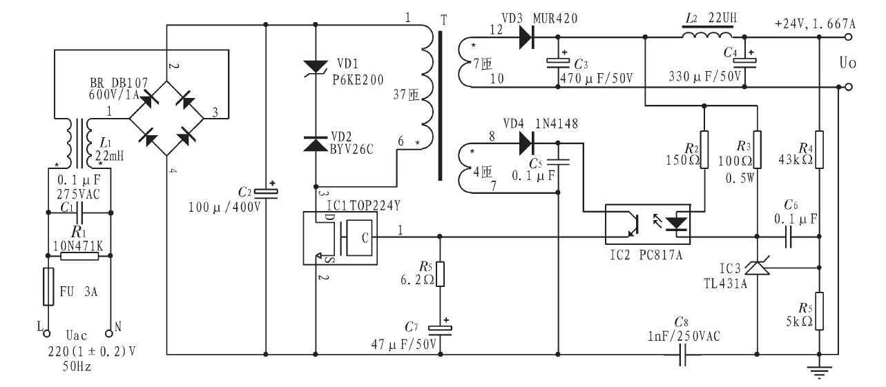 分类:工程技术科学 请问谁有220v转24v开关电源原理图?