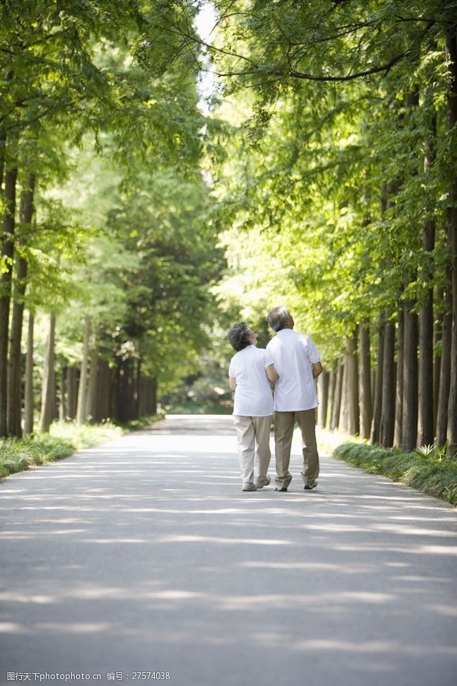 老年人树林中散步图片