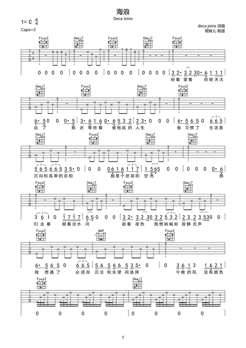 decajoins海浪吉他谱
