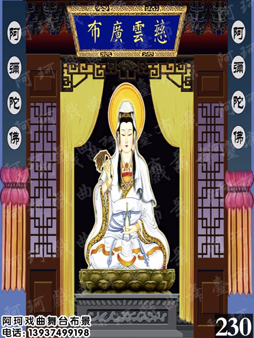 戏曲戏剧舞台布景 背景 幕布道具 唱戏 演出 表演喷绘图观音 佛像