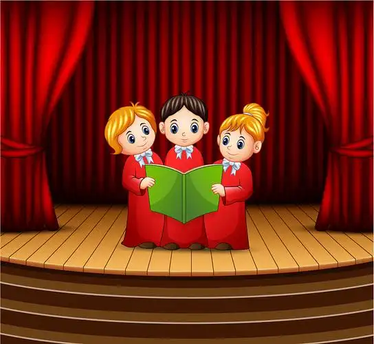 儿童节剧场舞台孩子表演节目扁平矢量插画竖版无字
