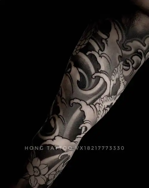 浪花臂纹身图片手臂老传统纹身图案