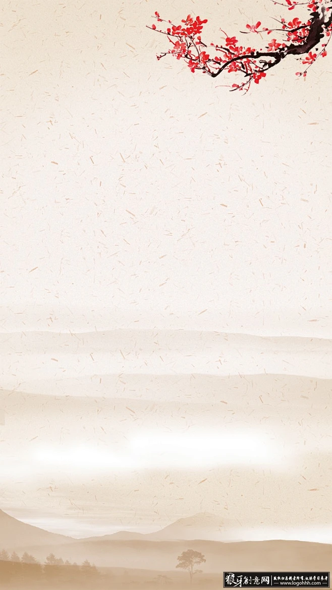 中国风海报psd古典传统文化水墨背景梅花远山峦中国风背景意境中国风