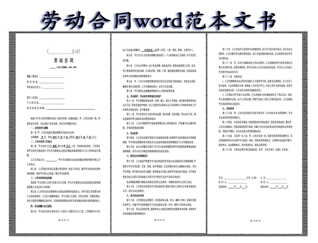 劳动合同书样本图片