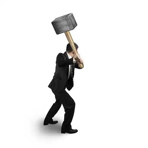 漫画幽默概念用大锤来敲碎坚果的谚语或图片素材