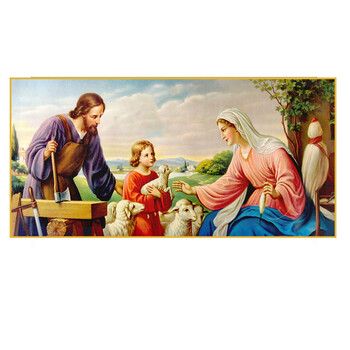 天主教基督教欧式古典人物圣像画仿真画耶稣圣像圣家三口定制客厅沙发