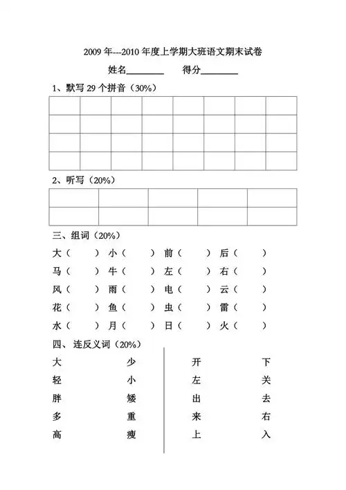 幼儿大班语文试卷