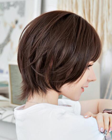 假发短发女夏季全头套式真发全真人发圆脸修脸网红波波头短发发型