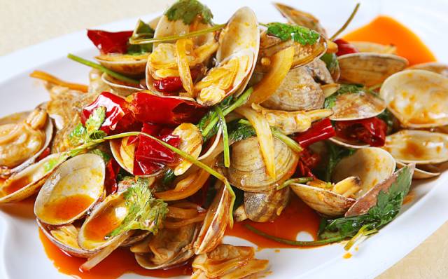 这盘辣炒花蚬子仿似一股清流别人家的蚬子没有肉我们家就有就有就有