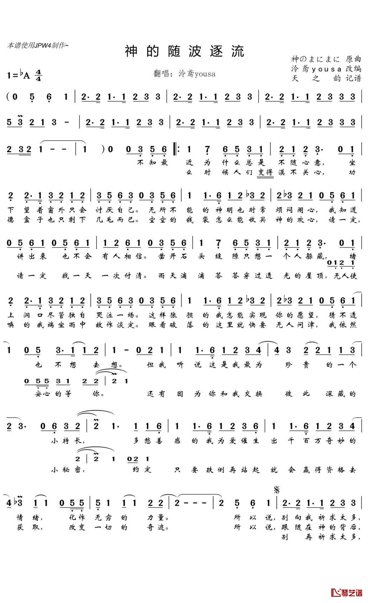 神的随波逐流简谱(歌词)-泠鸢yousa演唱-天之韵记谱2