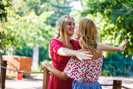 两个可爱的姐妹互相拥抱着