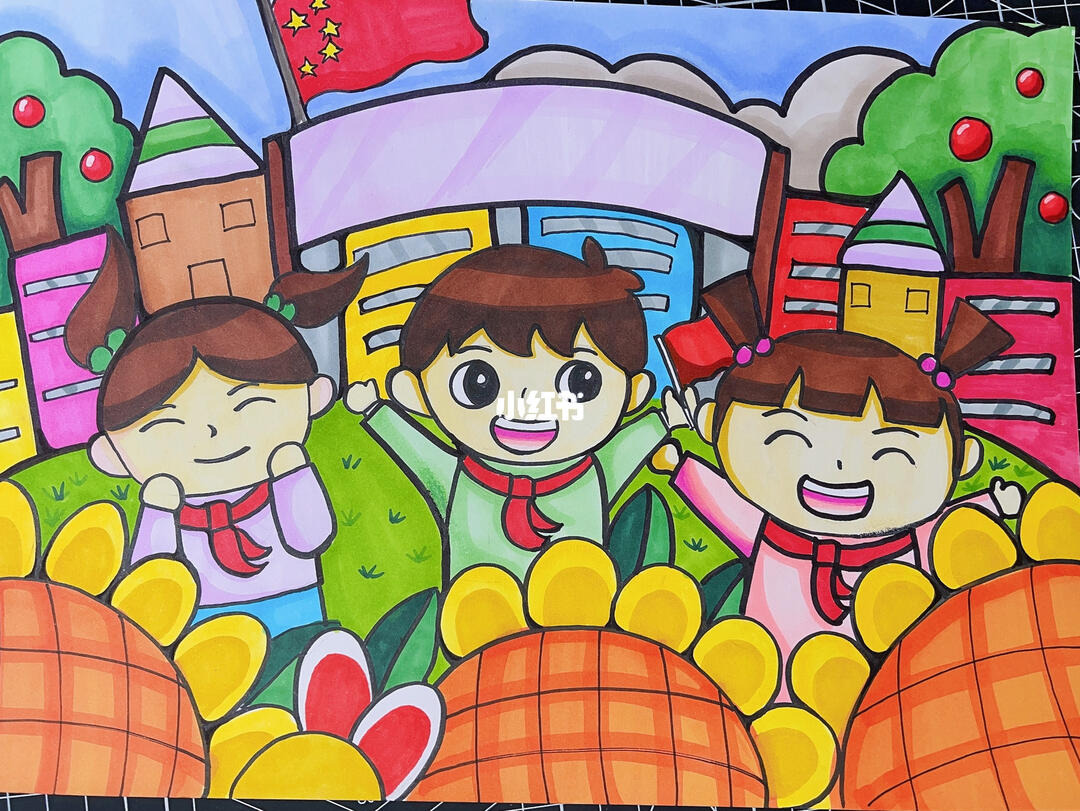 我是小学生儿童画 校园儿童画 开学啦儿童画 临摹加创作了一幅适合
