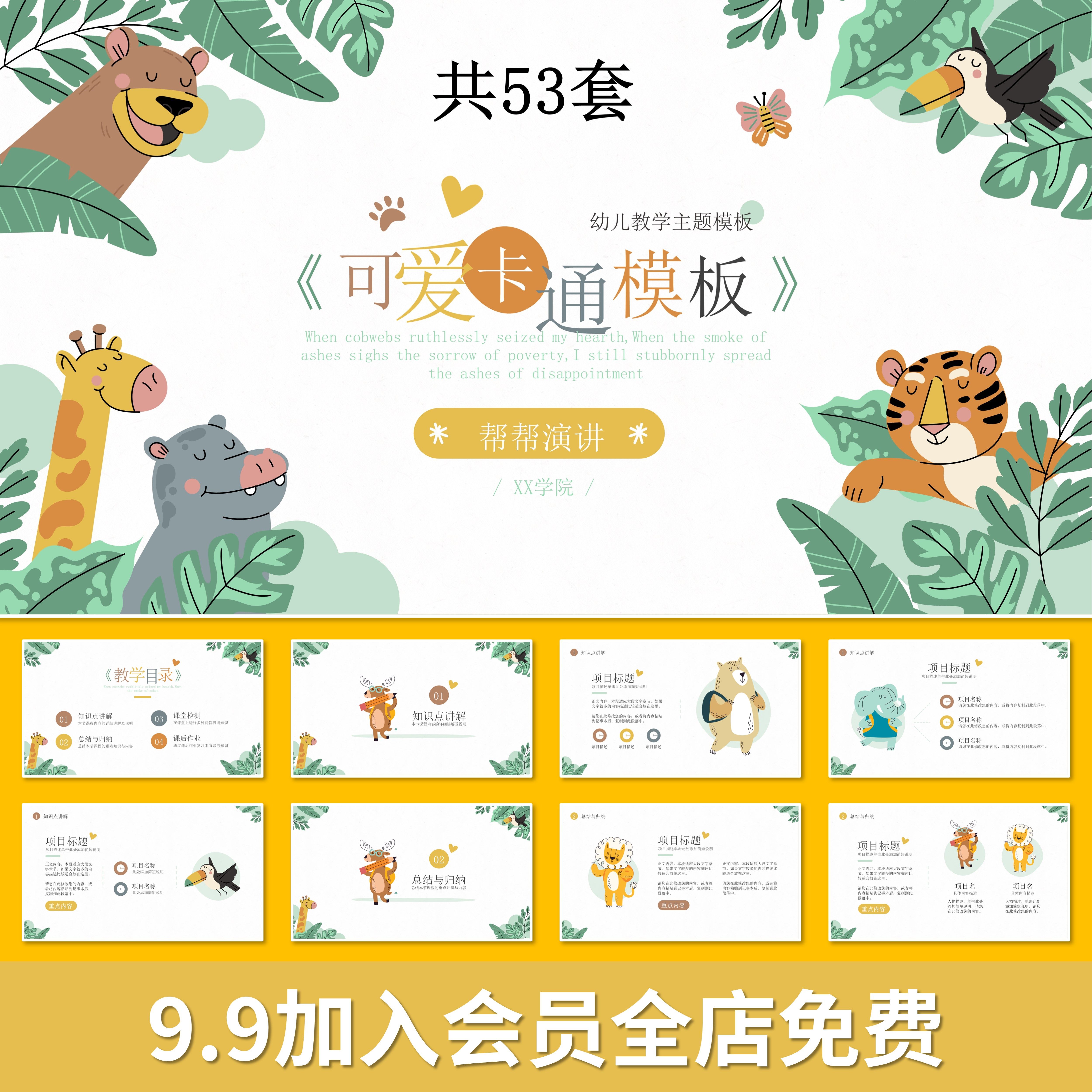 m69可爱ppt模板可爱卡通儿童幼儿园插画手绘小朋友动物动漫小孩