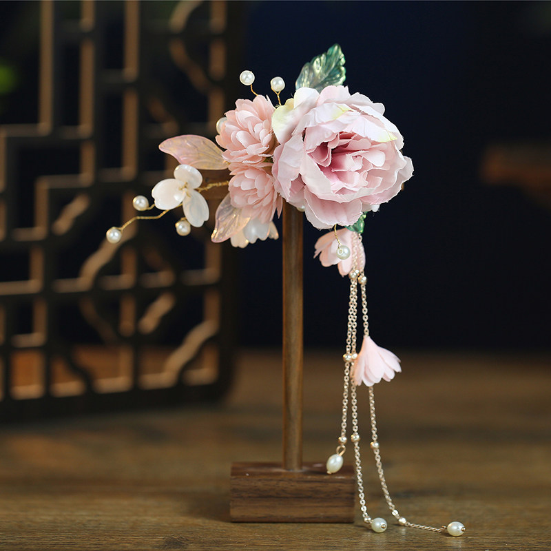汉服绢花发夹珍珠发簪子发饰古装新娘花朵头饰古风拍照影楼写真