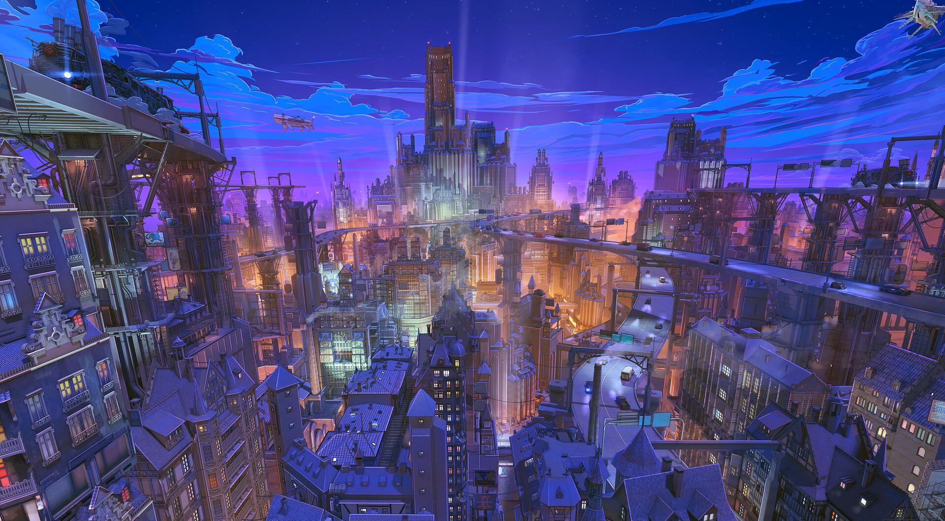 动漫风景壁纸插画分享——灯火阑珊的城市夜色