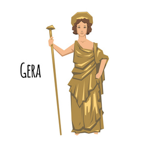 奥林匹斯众神的女王.神话.神圣的神话人物.白色背景上的孤立卡通人物.