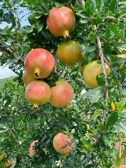 秋天到了果园里一片丰收在望的景象饱满的果实挂满枝头