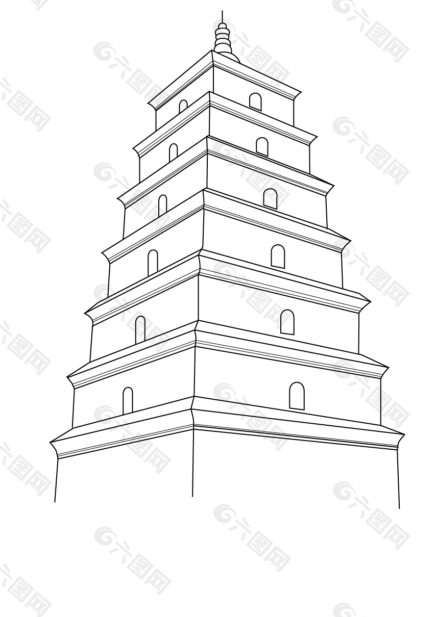 西安小雁塔线条免抠素材免费下载_觅元素51yuansu.com