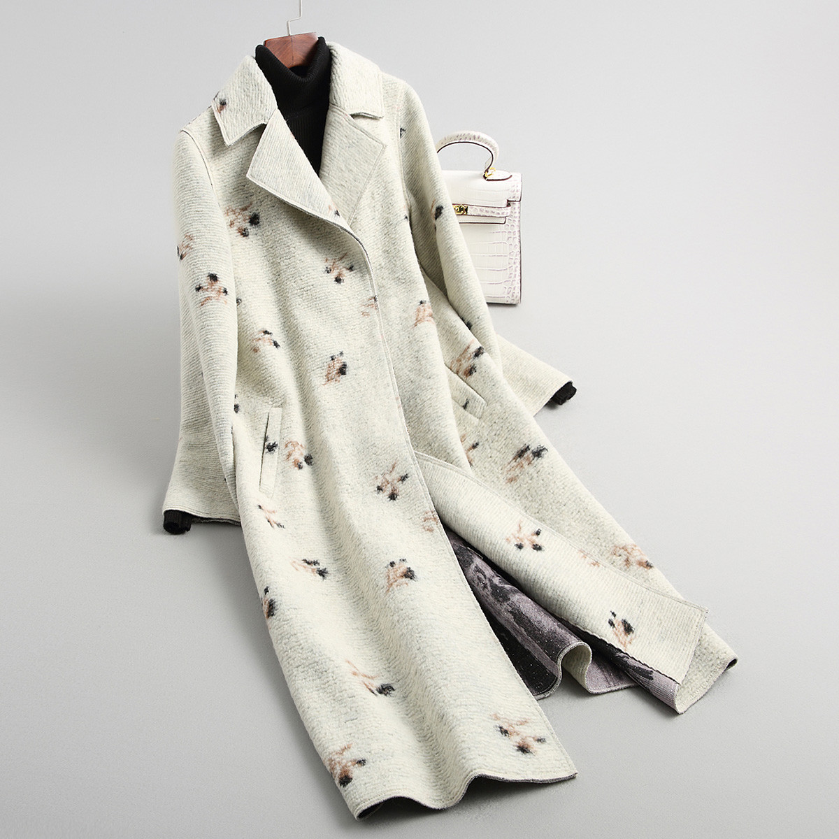 绵羊毛大衣女长款3d印染女式外套