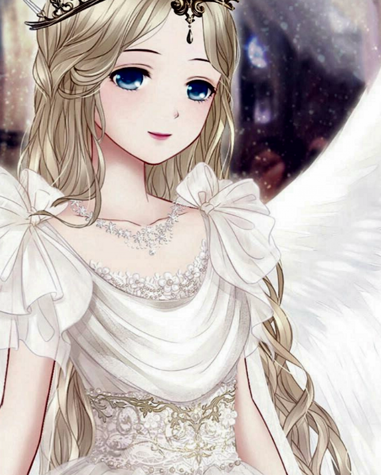 女孩子 姑娘 白色连衣 梦幻 水晶 4k手机壁纸动漫竖屏