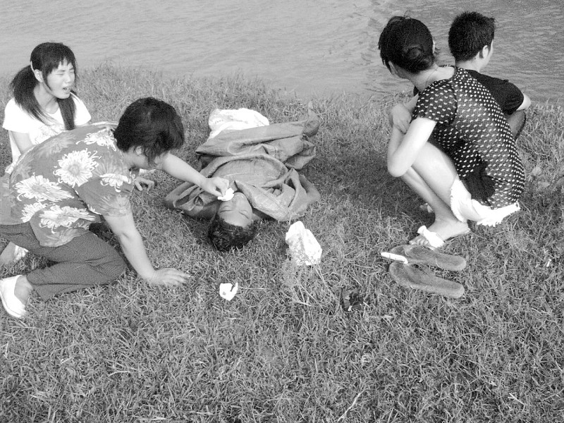 男孩溺水尸体浮上水面