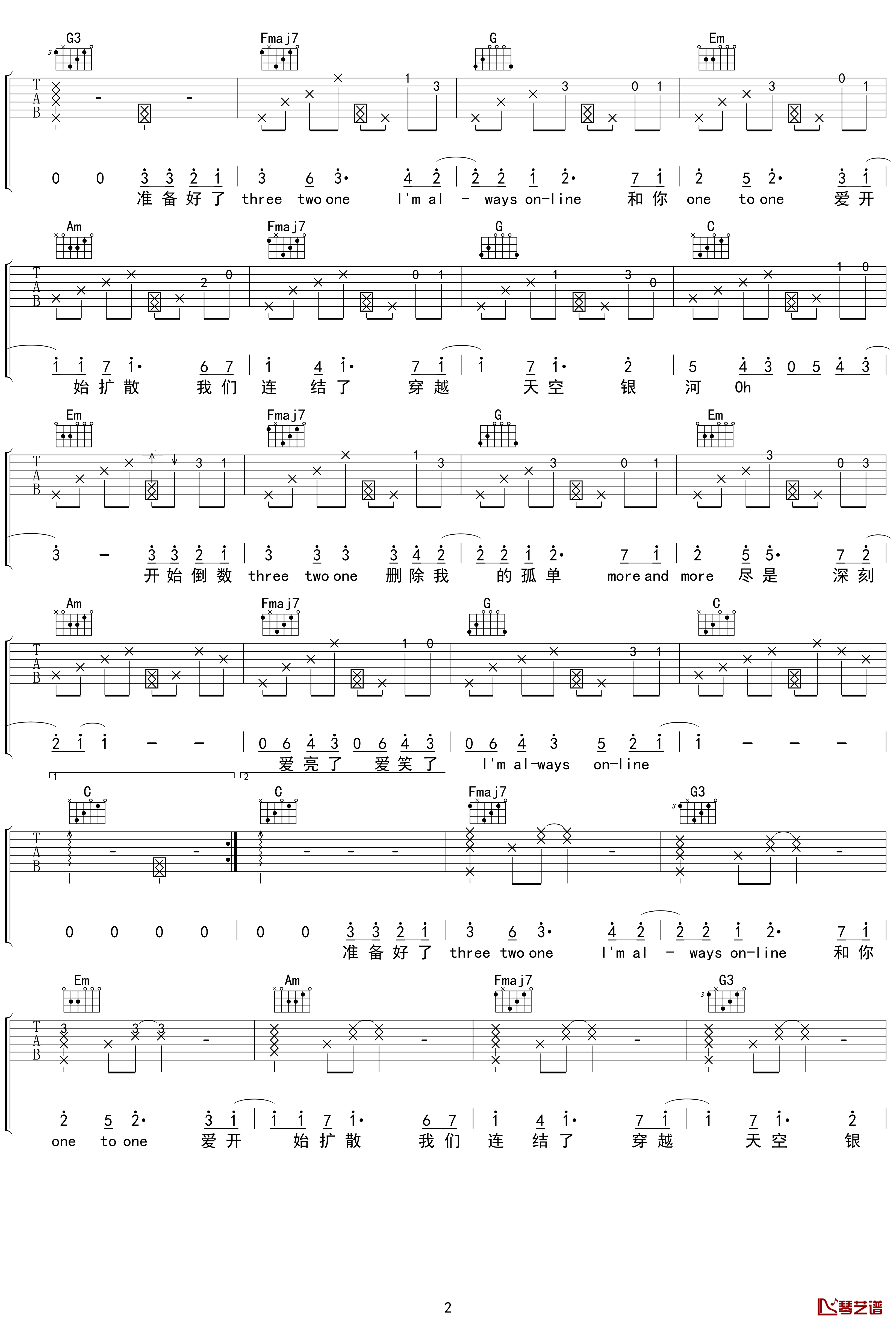 always online-一直在线双手简谱预览2