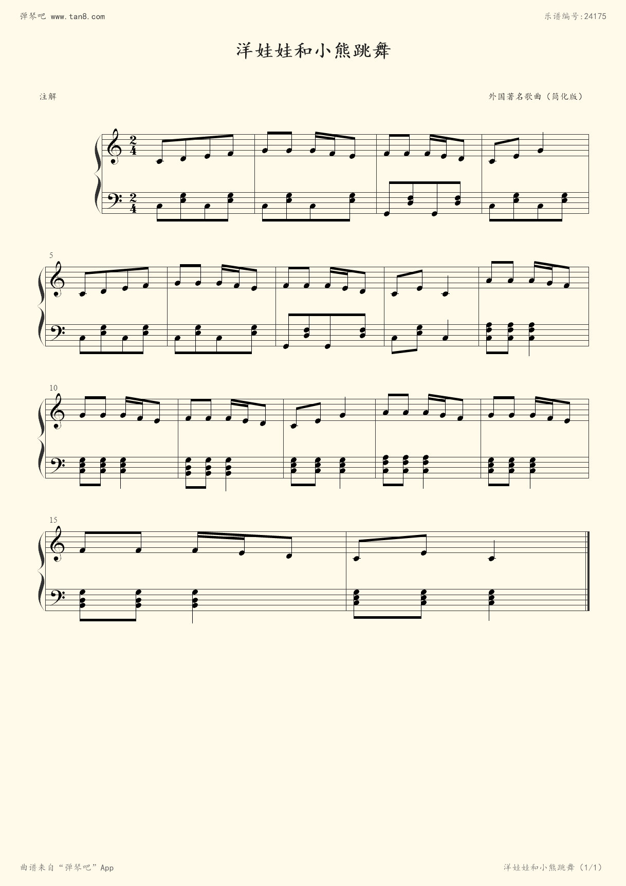 《洋娃娃和小熊跳舞,钢琴谱》简化版,外国著名儿童歌曲|弹琴吧|钢琴谱