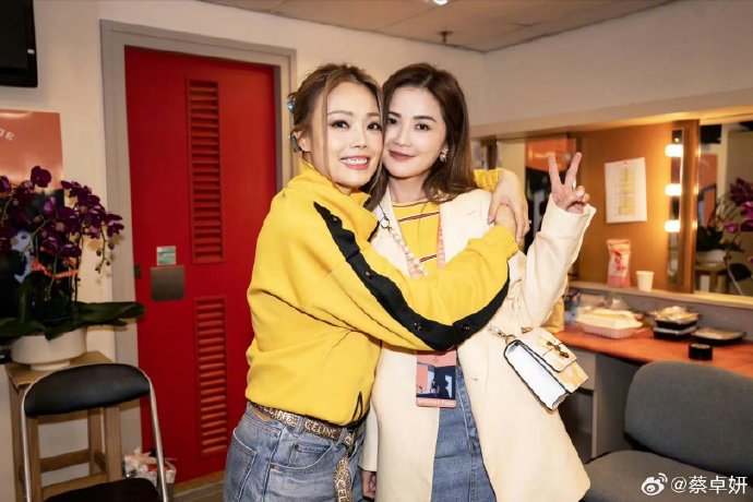 蔡卓妍晒容祖儿演唱會后台合照