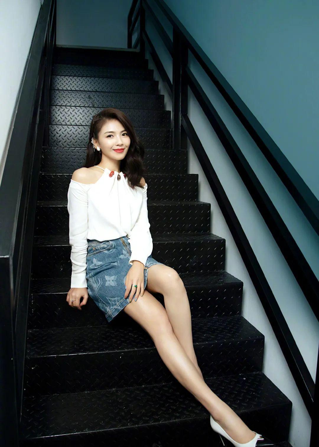 刘涛的的扎染撞色牛仔裙,和浅色外套搭配,知性优雅中更时尚_颜色_白色