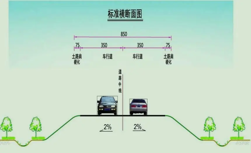 966km,采用二级公路标准建设,设计速度 40 公里/小时,路基宽度 8.
