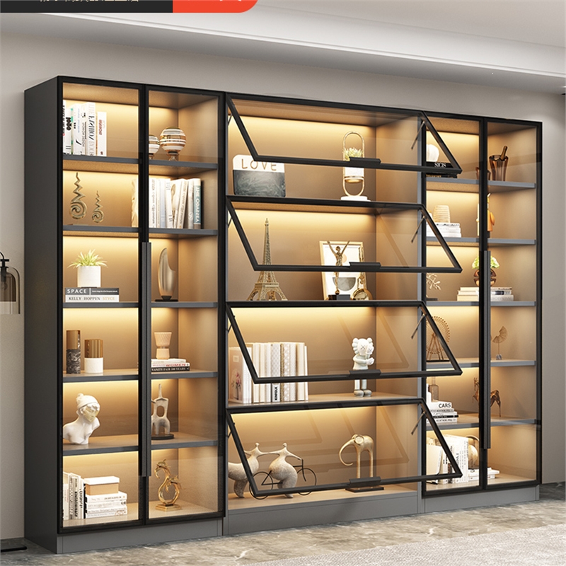 医匠定制书柜尘书架一体组合整墙带玻璃门轻奢现代简约客厅展示柜