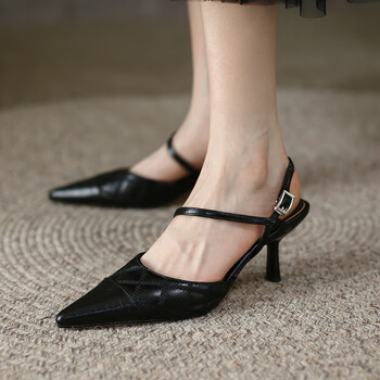 2024欧美新款尖头露趾细高跟女士踝带一字扣细跟凉鞋简约高跟女鞋