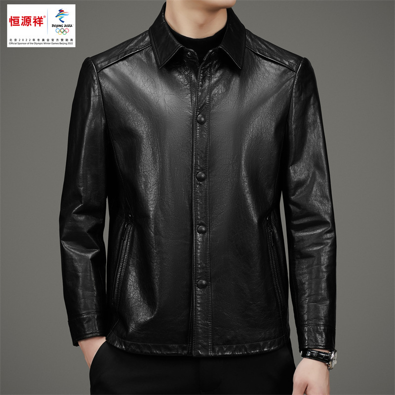 恒源祥高端真皮男装秋冬新款男士商务休闲海宁皮衣绵羊皮夹克外套