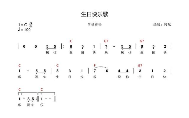 生日快乐简谱(歌词)-卓依婷演唱-陈洲宏记谱1