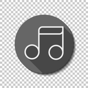 简单的音乐音符. 线性图标薄轮廓. 平图标长阴影圈透明网格.